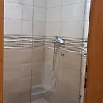 Die Hotel Auto Kamp Titograd hat einen Blick auf die Terrasse. Die Villa verfügt über ein Badezimmer mit einer getrennten Toilette und einer Dusche. Handtücher gehören auch zu den Badezimmern.